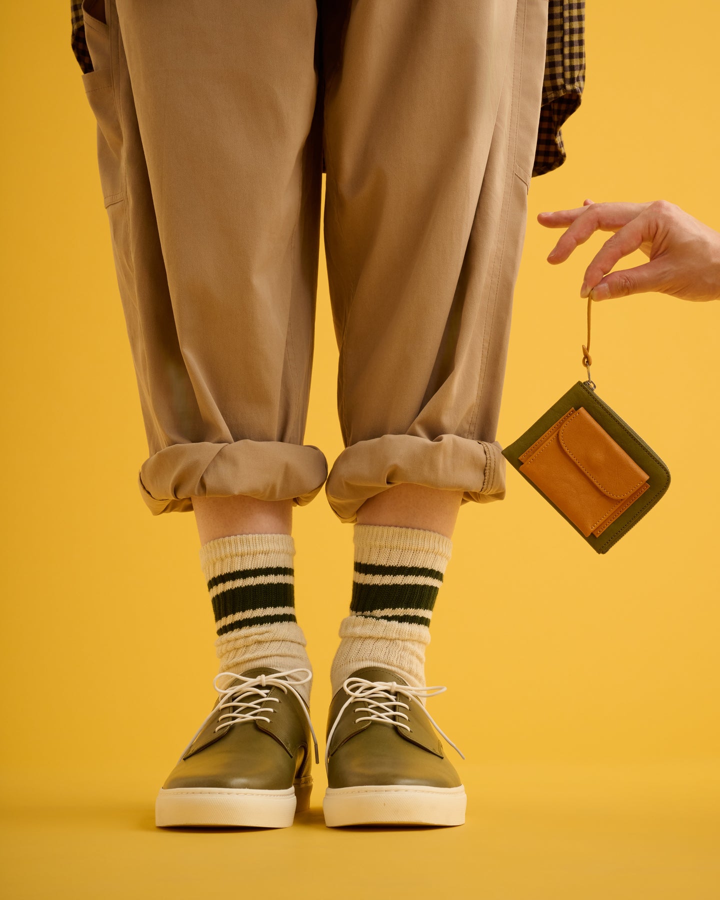 シンプルなお散歩スタイルにはインパクトのあるレザーアイテムを シンプルな装いの日こそ、レザーアイテムで遊び心をプラス。ターコイズブルーの存在感のあるバッグやダルメシアン柄のショルダーバッグやカラフル小物が、さりげなくコーデを格上げしてくれます。いつものお散歩も、ちょっと特別に感じられるスタイルです。 使用アイテム Sold Out RENトートバッグ Turquoise $205.00 Sold Out Liberatoローファ― Black $493.00 artigiano長財布 Dalmatian $212.00 kissoraミニ財布 $296.00 TOSSスニーカー khaki $380.00 numeri Sottile Mini Bi-Color / Green x Yellow $261.00 sugata Long Wallet / Layers / Black $254.00 使用ブランド トレンドに左右されないデザインとシンプルさ REN イタリア語で職人という名前のブランド名 artigiano 日々使用する中で楽しかったり気分が良くなる、そんな革製品を提案 DELIFE 日常にそっと寄り添う「kissora」との生活 kissora 革靴とスニーカーの要素を合わせ持ったハイブリッドシューズブランド TOSS ハンドメイドにこだわり、1つ1つ職人の手作業 numeri 「普通を作る工夫の重なり」をコンセプトに sugata LOCALアイテムコレクション