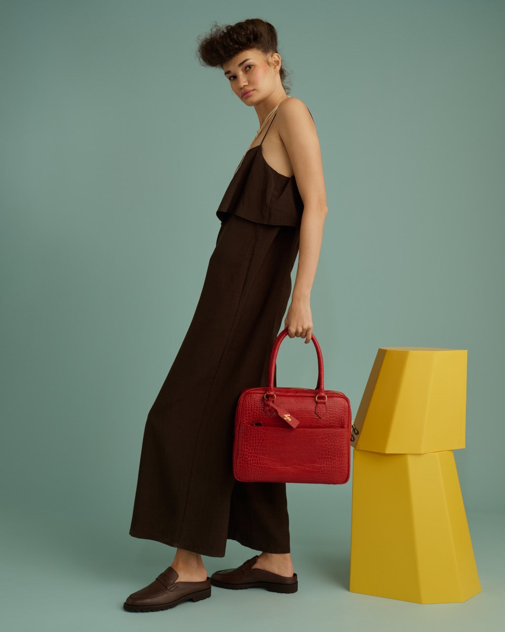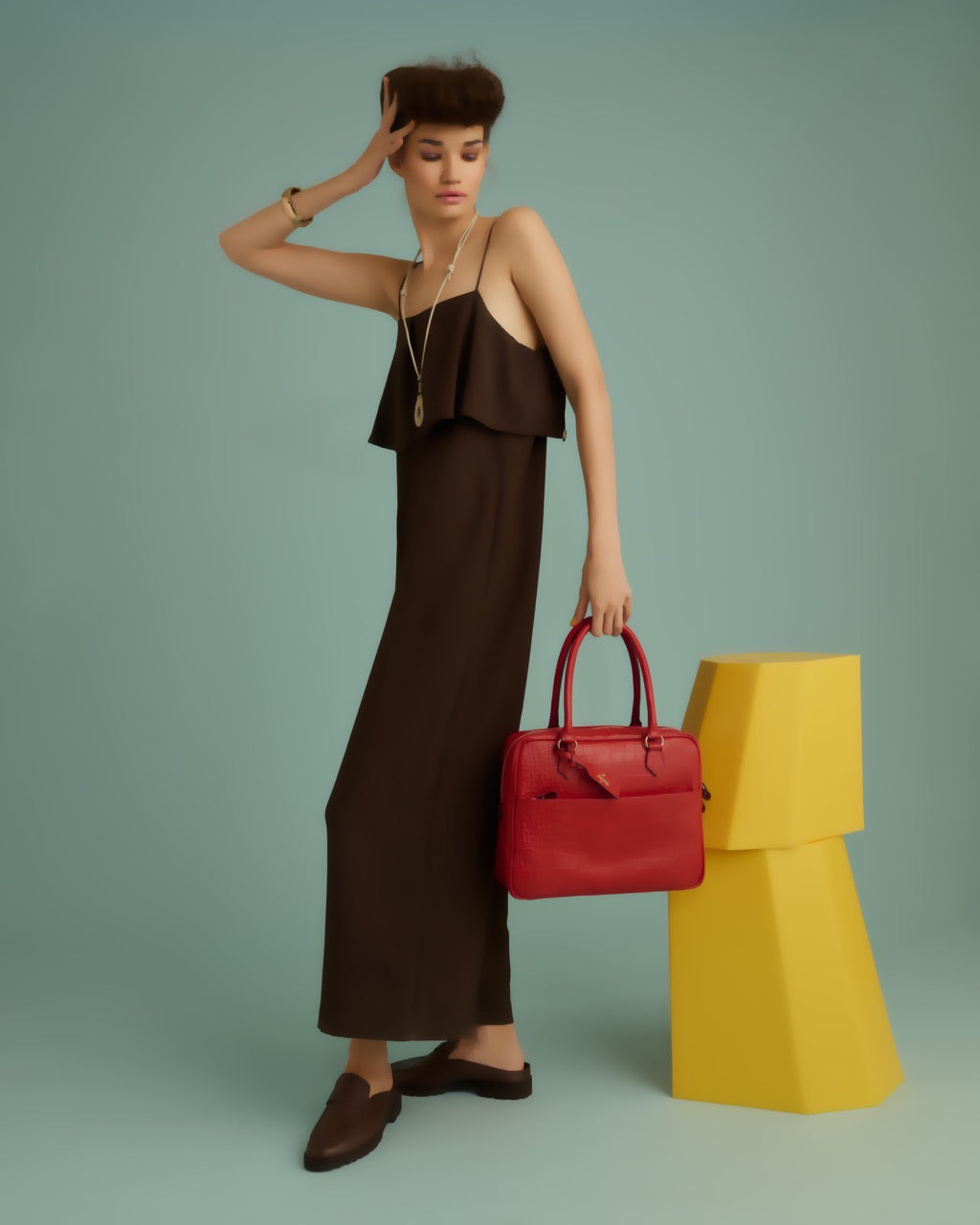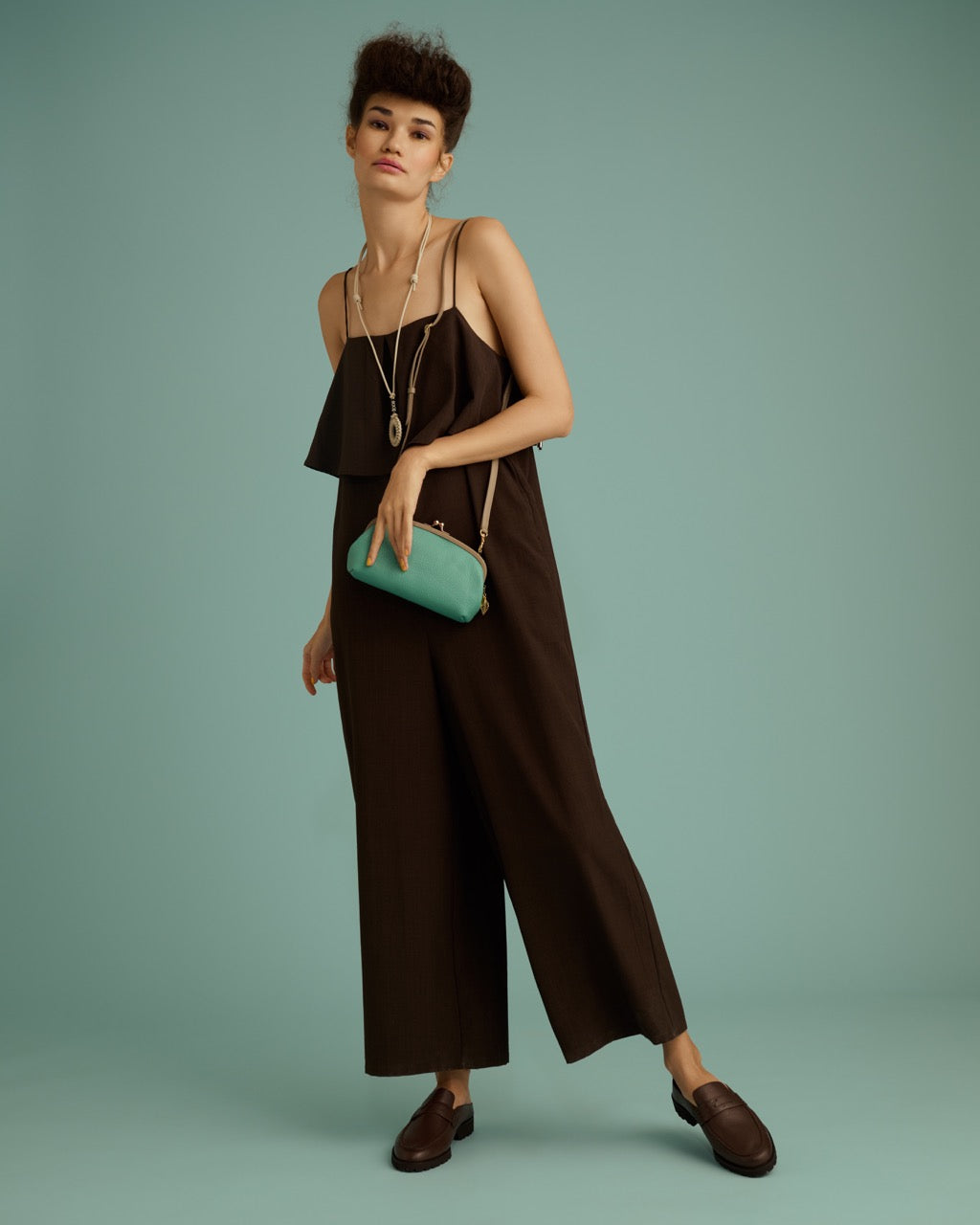 夜のディナーへ大人バカンススタイル 茶色のワンピースをシックなブラックのバッグや、色の効いた小物をスタイリング。レザーで大人な雰囲気を纏いつつ少し遊びの効いたスタイルに。 使用アイテム legu Chroma A4 2Way Tote Bag / Red $439.00 Sold Out Liberatoローファ― Dark Brown $495.00 tonericoミニ財布 ミントクレタ(エメラルドグリーン) $368.00 Kolmio [VALO] 05 KINCHAKU / Black x Black $495.00 VIA DOAN Zilda Round Short Wallet / Silver $340.00 SENTI FLATTER THE SENSES Leather Blade Circle Long Necklace / Ivory $114.00 使用ブランド いつも自分らしくいられるようにと願いを込めたメイドインジャパンブランド legu アップサイクルした畳と柔らかな姫路レザーのシューズブランド Liberato 縁起物としても知られる、「がま口」 tonerico 持つ人の個性を際立たせるバッグを提案します。 Kolmio ”愛を込めた”手作業がコンセプト VIA DOAN 感性に刺激を与えられるモノづくりを目指す SENTI FLATTER THE SENSES URBANMODEアイテムコレクション