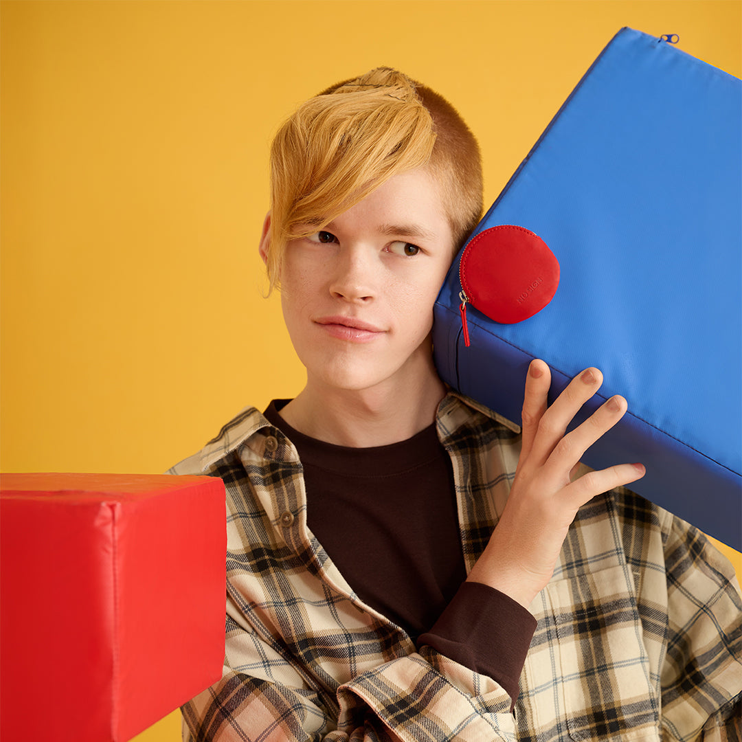 A simple round coin purse. The size is cute when you hold it in your hand, and it holds more than it looks. The zip closure allows for secure storage of not only bills and coins, but it can also be used as an accessory pouch for earrings, rings, earphones, etc.