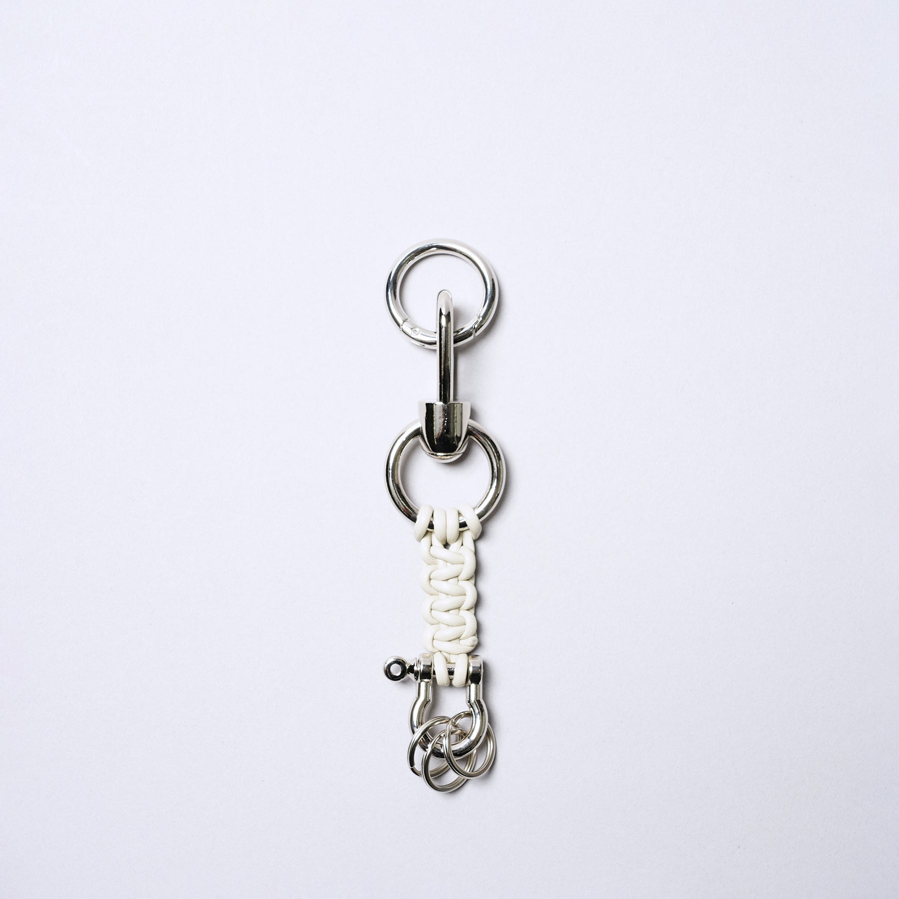 Leather cord braided keychain with hook carabiner and screw-lock D-ring