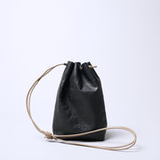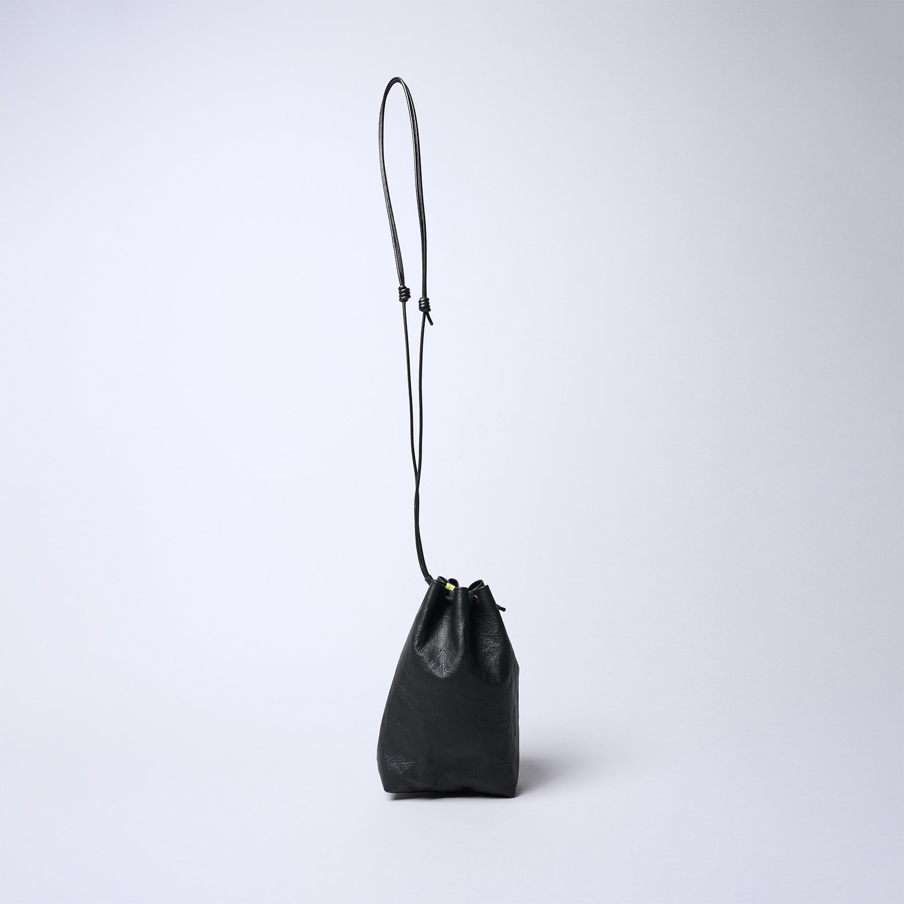 <SENTI FLATTER THE SENSES> Super Lightweight Dyneema Leather Drawstring Bag M  / Black