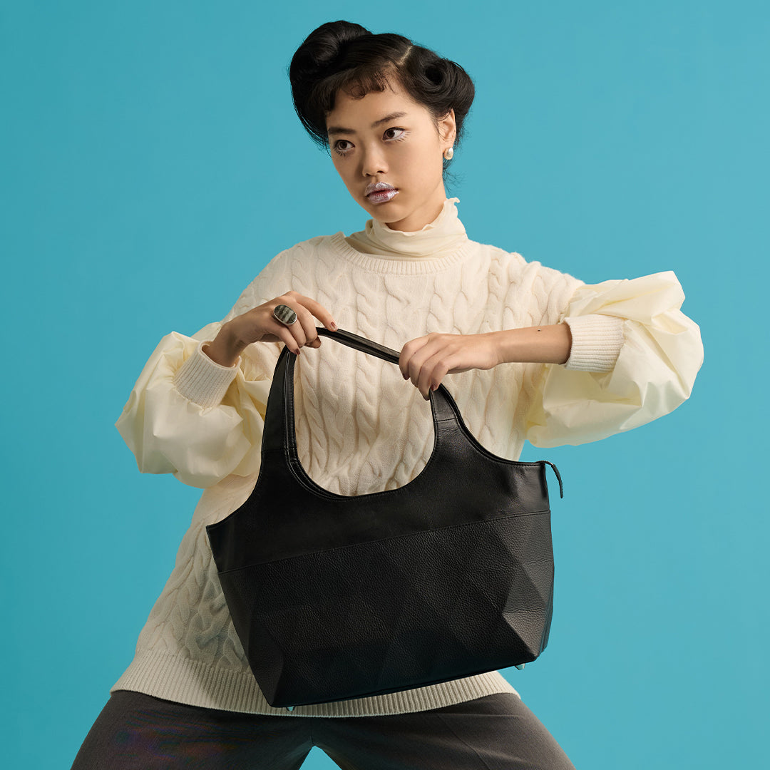 Kolmio【VALO】シリーズは、柔らかな牛革「ラムタッチ」とパキッとしたハリのある「シュリンク革」の異素材レザーを組み合わせたデザインが特徴。