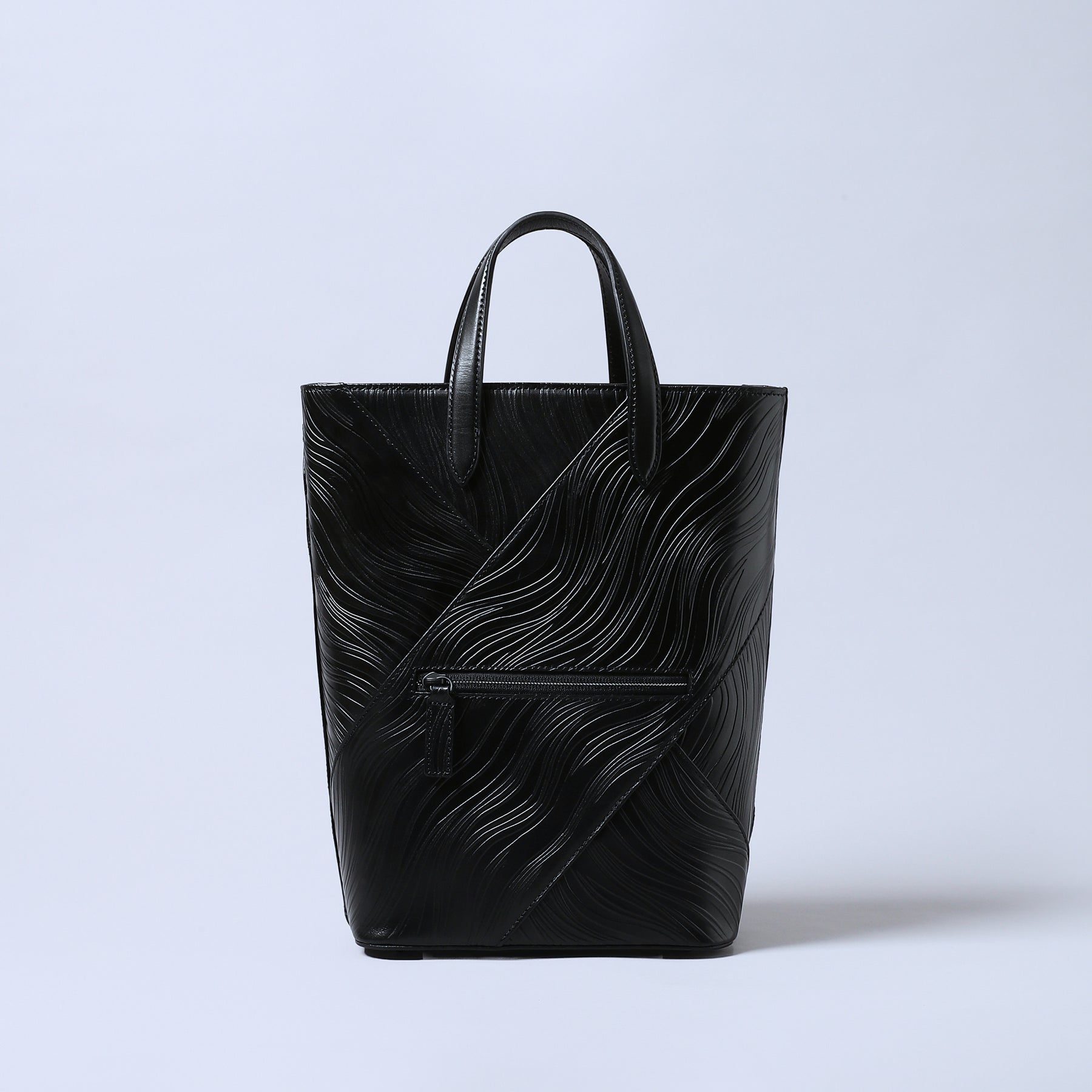 仕立ての美しいフォルムにアーティスティックなエンボスが映える。スタンダードなデザインとエッジの効いた素材の融合はラグジュアリーな気品を漂わせつつモードなスタイルを演出。オンタイムからオケージョンまでスタイリングをモードに昇華させる、切れ味の良いコレクション。