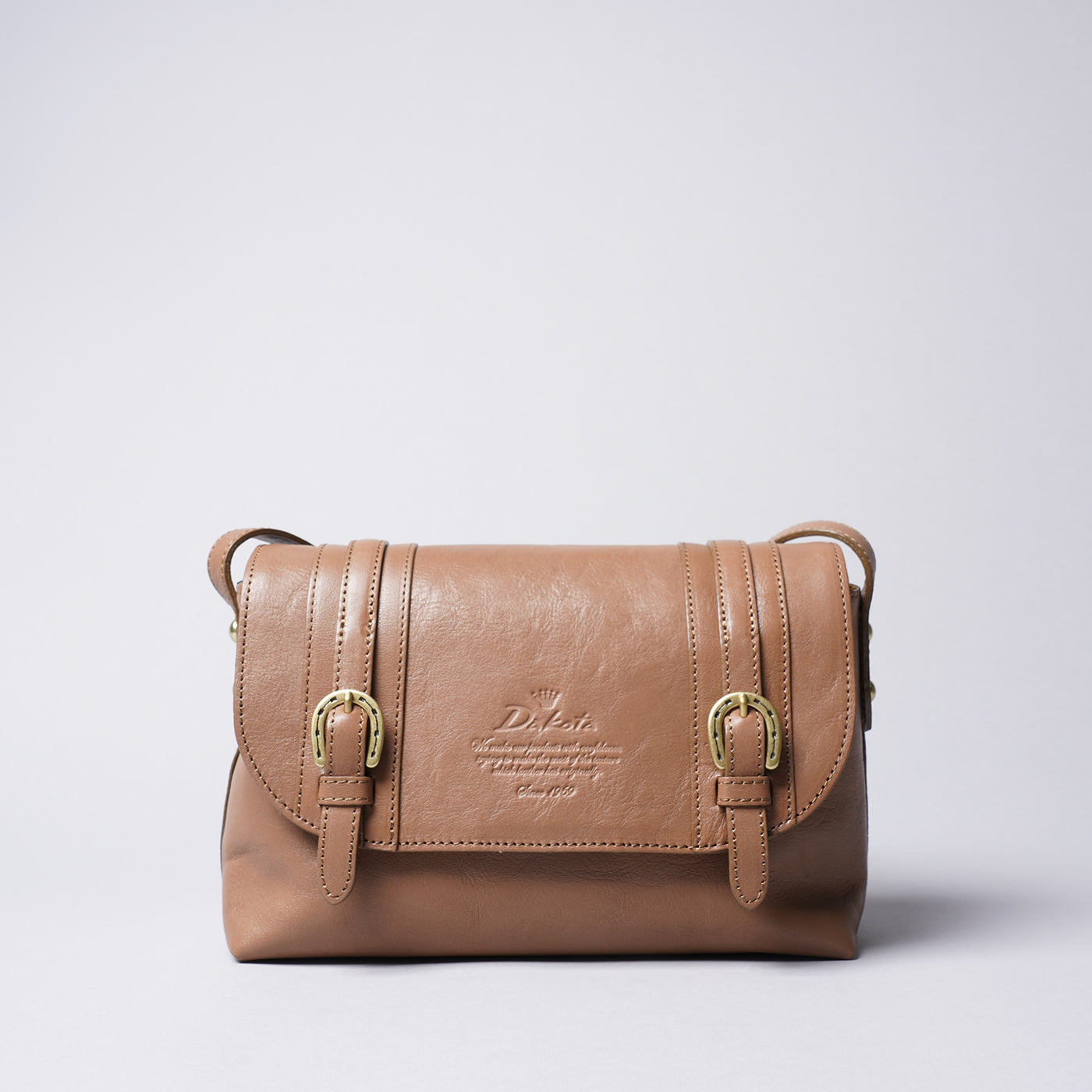 70年代のダコタを代表するレトロなデザインをリバイバルした、カブセ付きショルダーバッグ。馬蹄金具のベルトデザインがアクセントに。ショルダー紐の留め具もアンティーク調の金具を使っています。バッグ中央に刻印されたブランドもアクセントになっており、カラーバリエーションも多く、迷ってしまいそう。