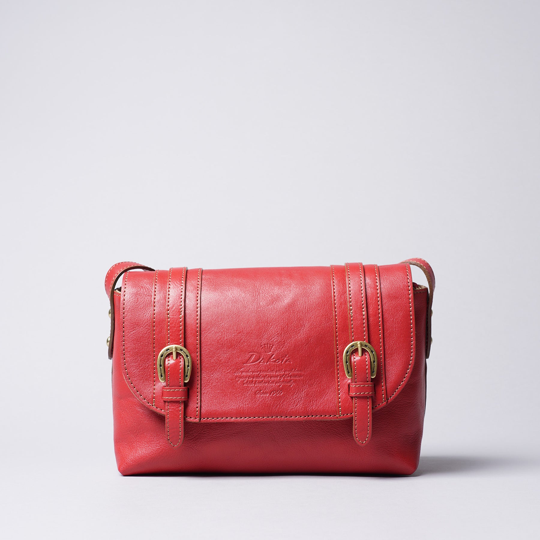 70年代のダコタを代表するレトロなデザインをリバイバルした、カブセ付きショルダーバッグ。馬蹄金具のベルトデザインがアクセントに。ショルダー紐の留め具もアンティーク調の金具を使っています。バッグ中央に刻印されたブランドもアクセントになっており、カラーバリエーションも多く、迷ってしまいそう。