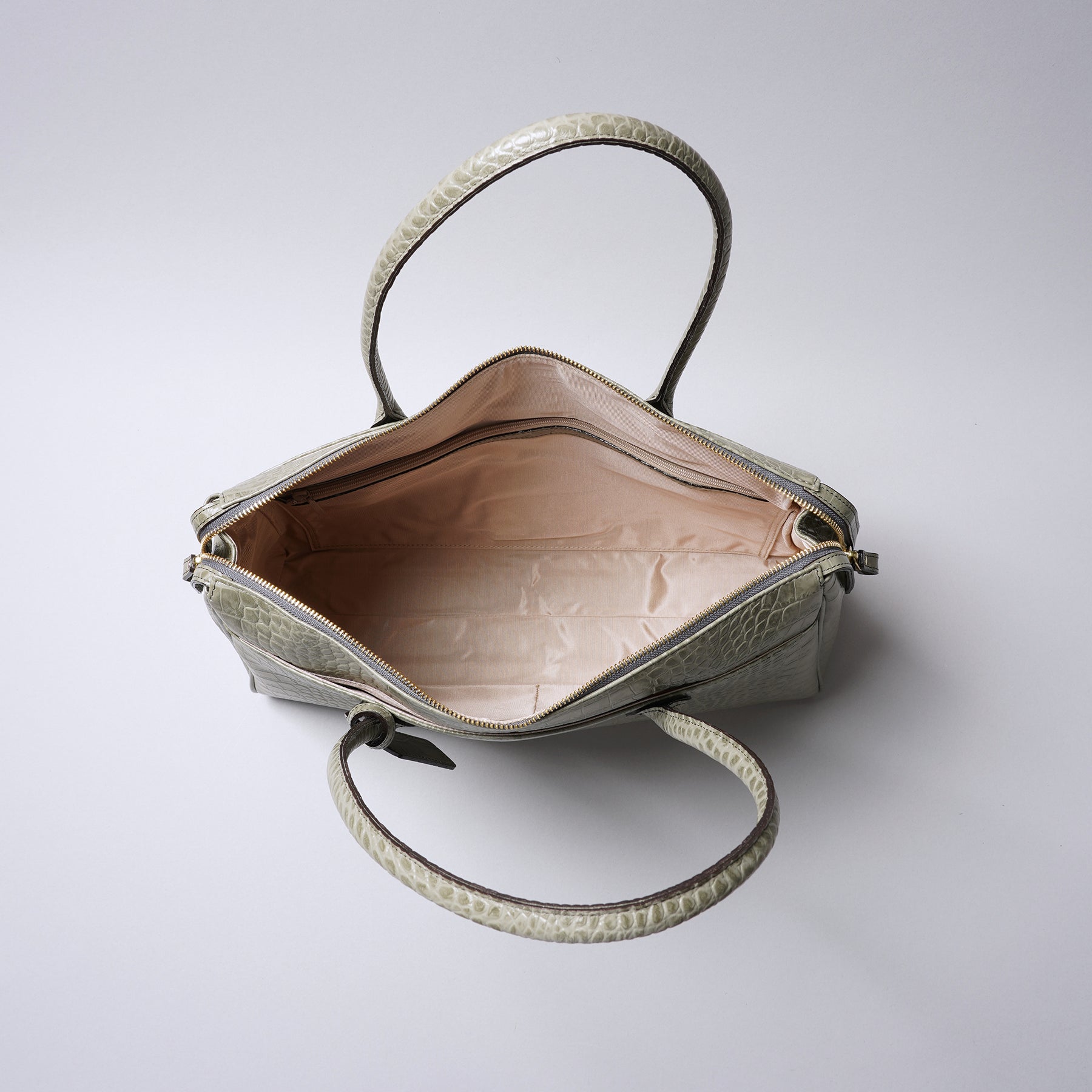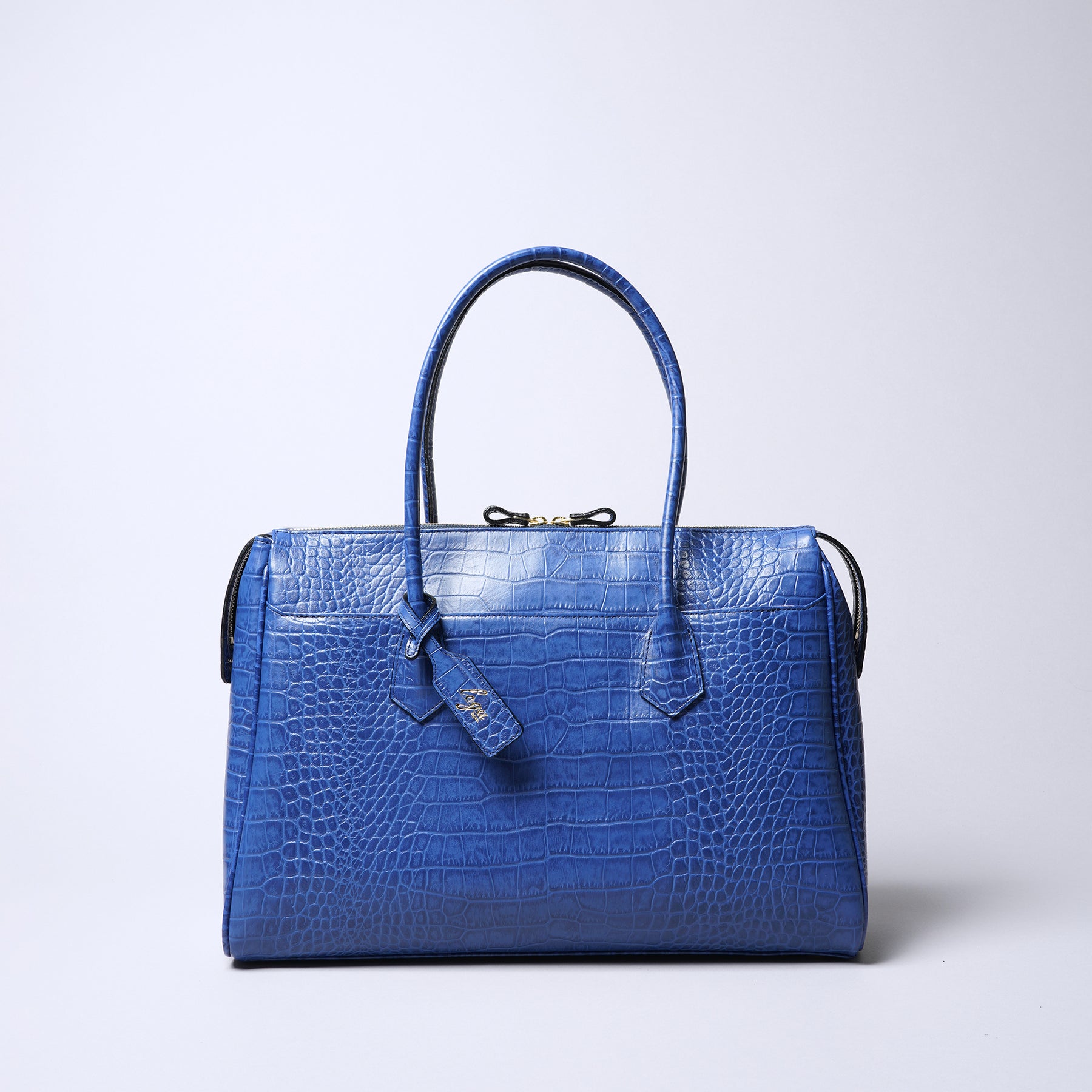 ビジネスシーンからデイリーシーンまで幅広く活躍するシリーズです。上品なクロコの型押し牛革を使ったトートバッグで、A4らくらく対応サイズです。前後にも大きめのポケット付き、内側には書類も仕切れる大きめに取ったファスナーポケットがあり、収納・仕分けにも便利な仕様になっています。