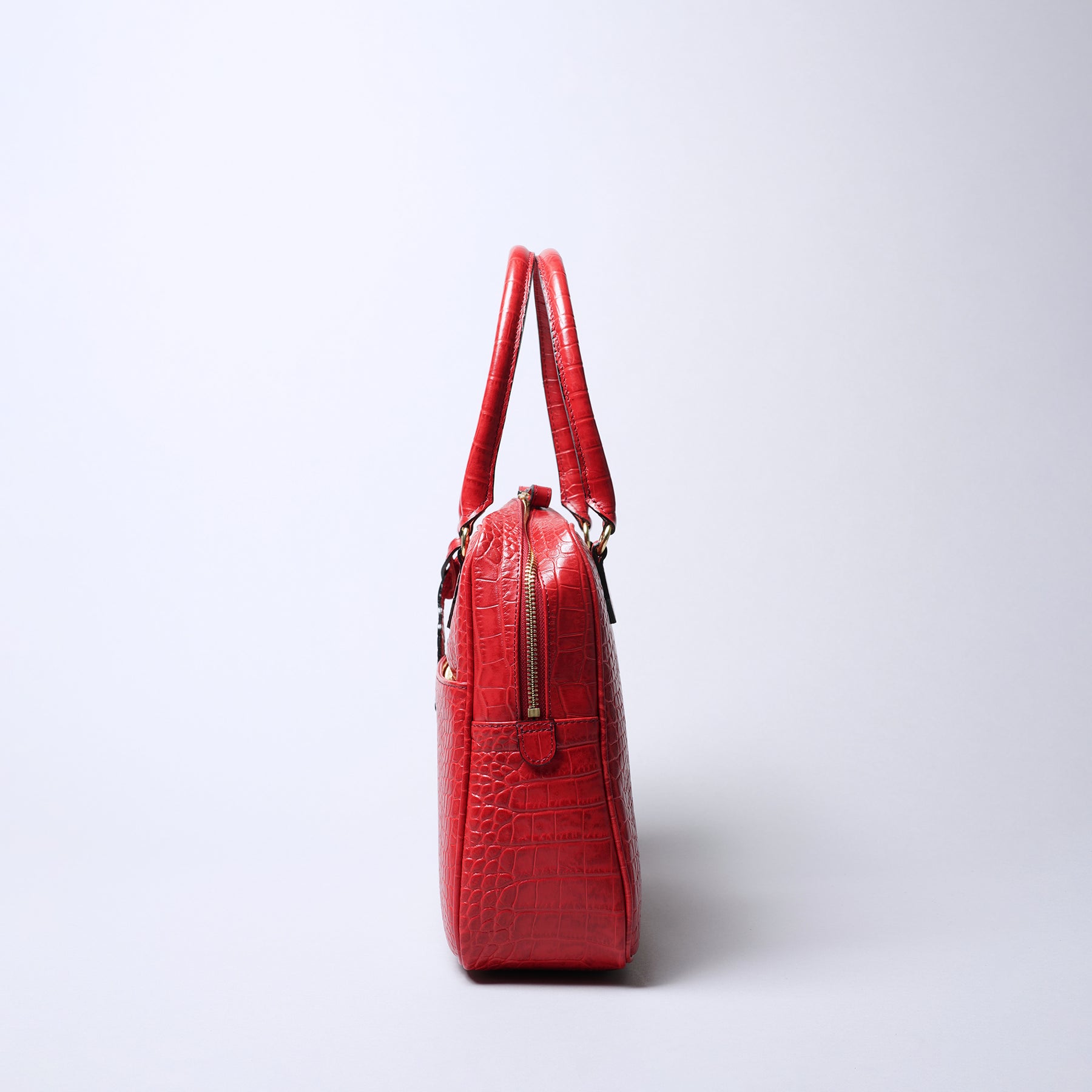 ビジネスシーンからデイリーシーンまで幅広く活躍するシリーズです。上品なクロコの型押し牛革を使ったトートバッグで、A4ぴったりサイズです。前に大きめのファスナーポケット付き、内側も大きめに取ったオープンポケットがあり、収納・仕分けにも便利な仕様になっています。着脱可能な同素材のショルダーベルト付きです。
