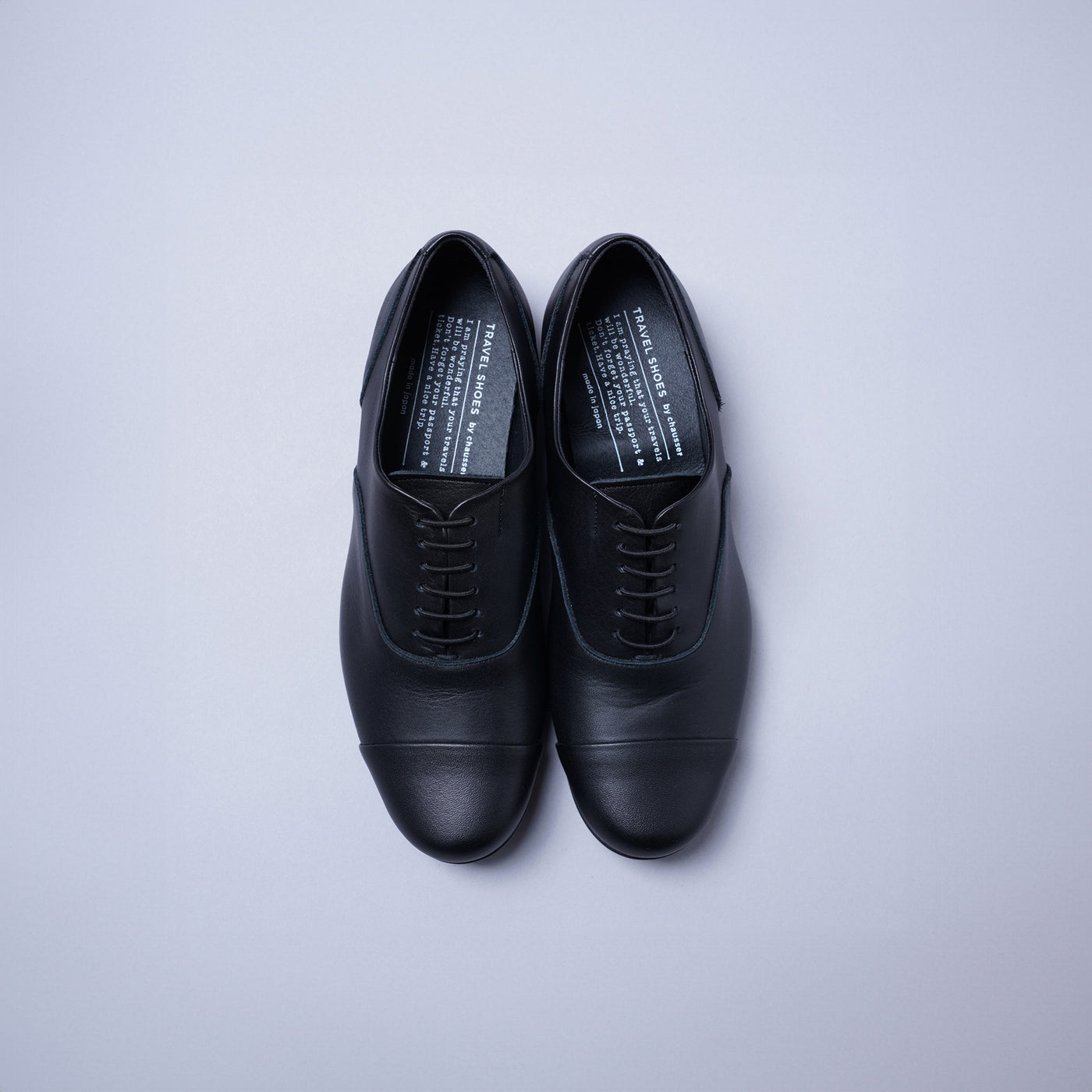 TRAVEL SHOESのストレートチップレースアップシューズはビジネスからカジュアルまでシーンを問わず着用できる汎用性の高さや豊富な色展開が幅広い年齢層に支持されています。TRAVEL SHOESは旅をテーマにしたシリーズのため、旅先への持ち運びが便利なシューズ袋を付属しています。革には染色時からフッ素樹脂を革の繊維にからませ、革の表面にも防水加工を施したソフトな風合いの革を使用しています。水をはじいて空気は通すため通気性は保たれます。
