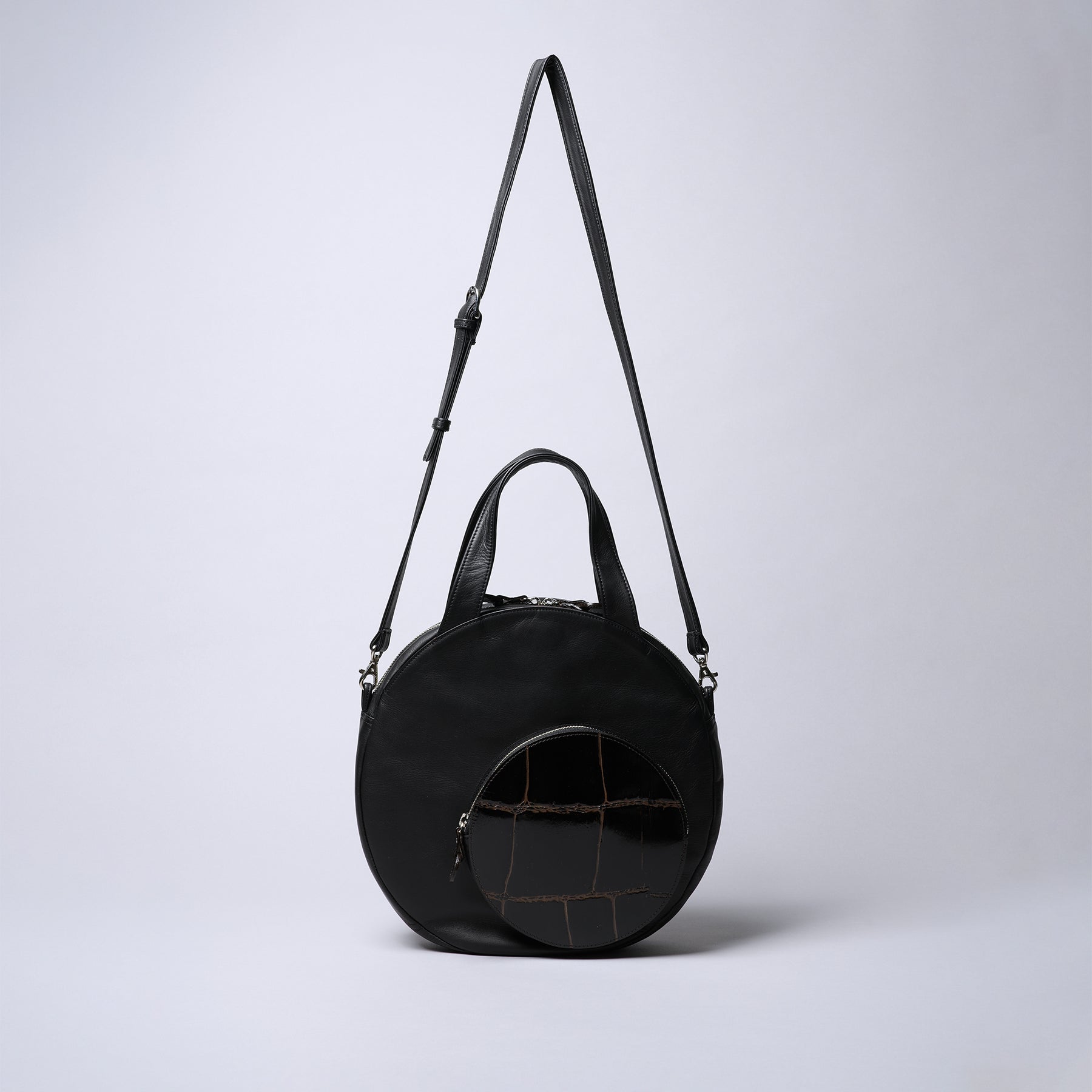 <リアルマインド ブラックレーベル>アポロン 2way丸形ショルダーバッグ 大/ブラック