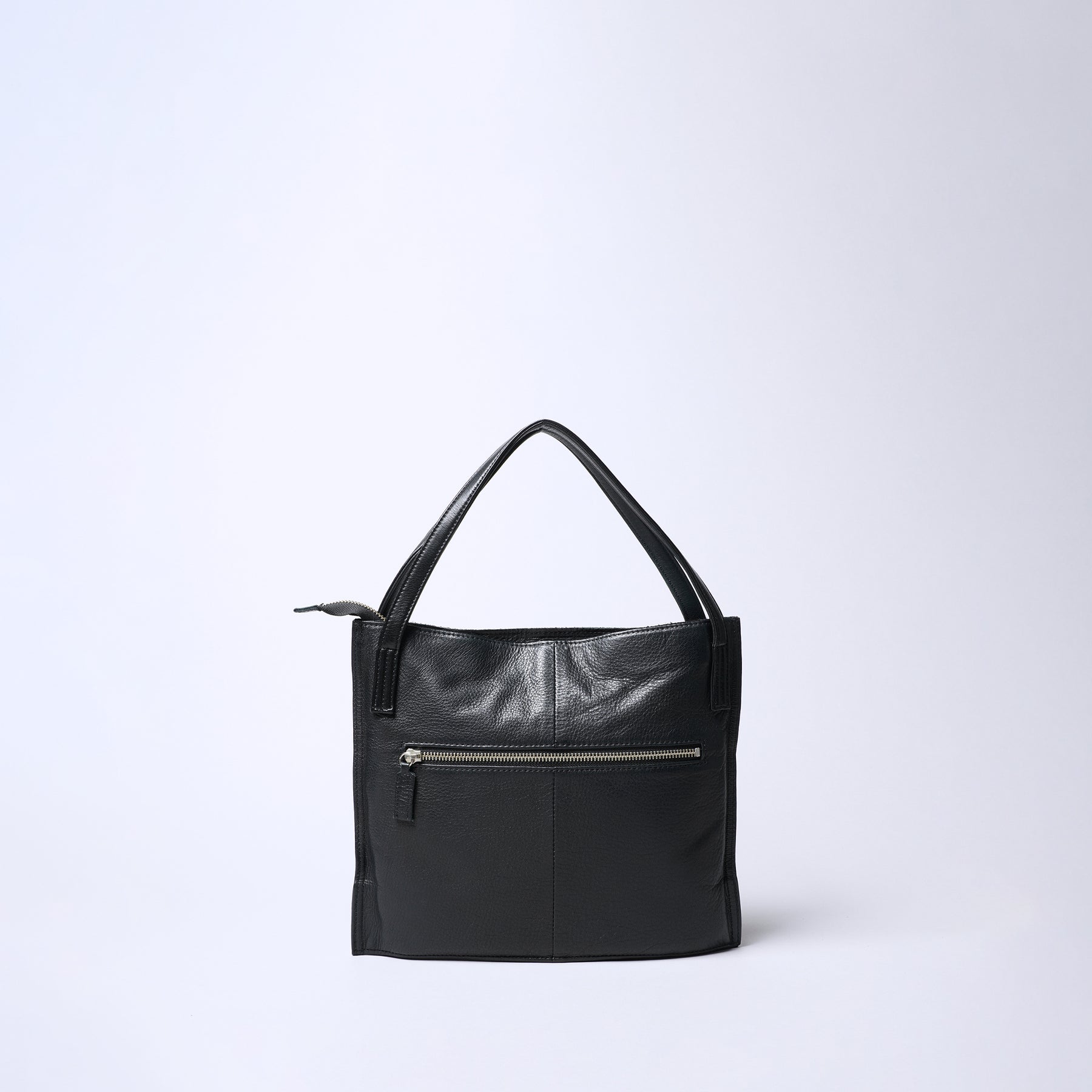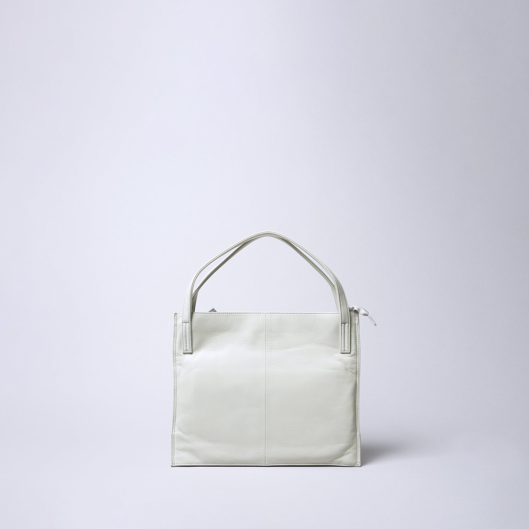手触りの良いソフト牛革を使い直線的なラインを意識し、持った時にスマートさを感じられるようにデザインされています。中に荷物を入れるとマチが膨らむ仕様になっており、表情の変化も楽しめます。