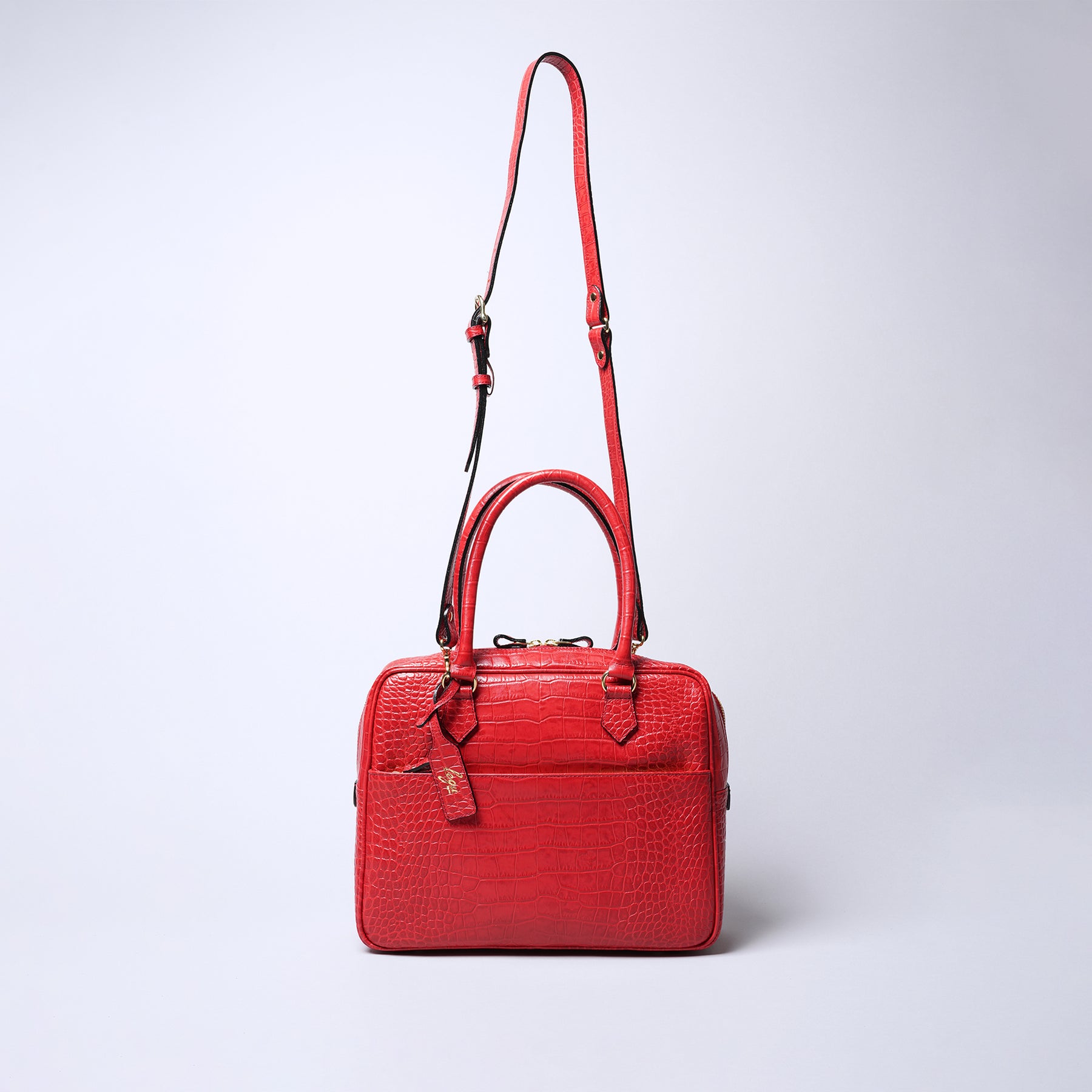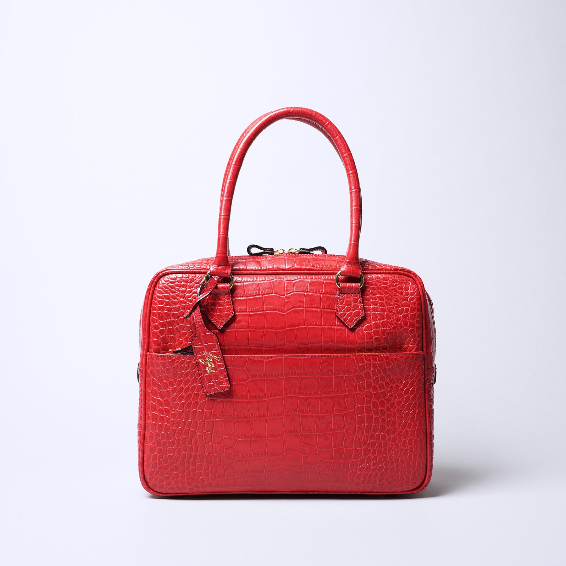 ビジネスシーンからデイリーシーンまで幅広く活躍するシリーズです。上品なクロコの型押し牛革を使ったトートバッグで、A4ぴったりサイズです。前に大きめのファスナーポケット付き、内側も大きめに取ったオープンポケットがあり、収納・仕分けにも便利な仕様になっています。着脱可能な同素材のショルダーベルト付きです。