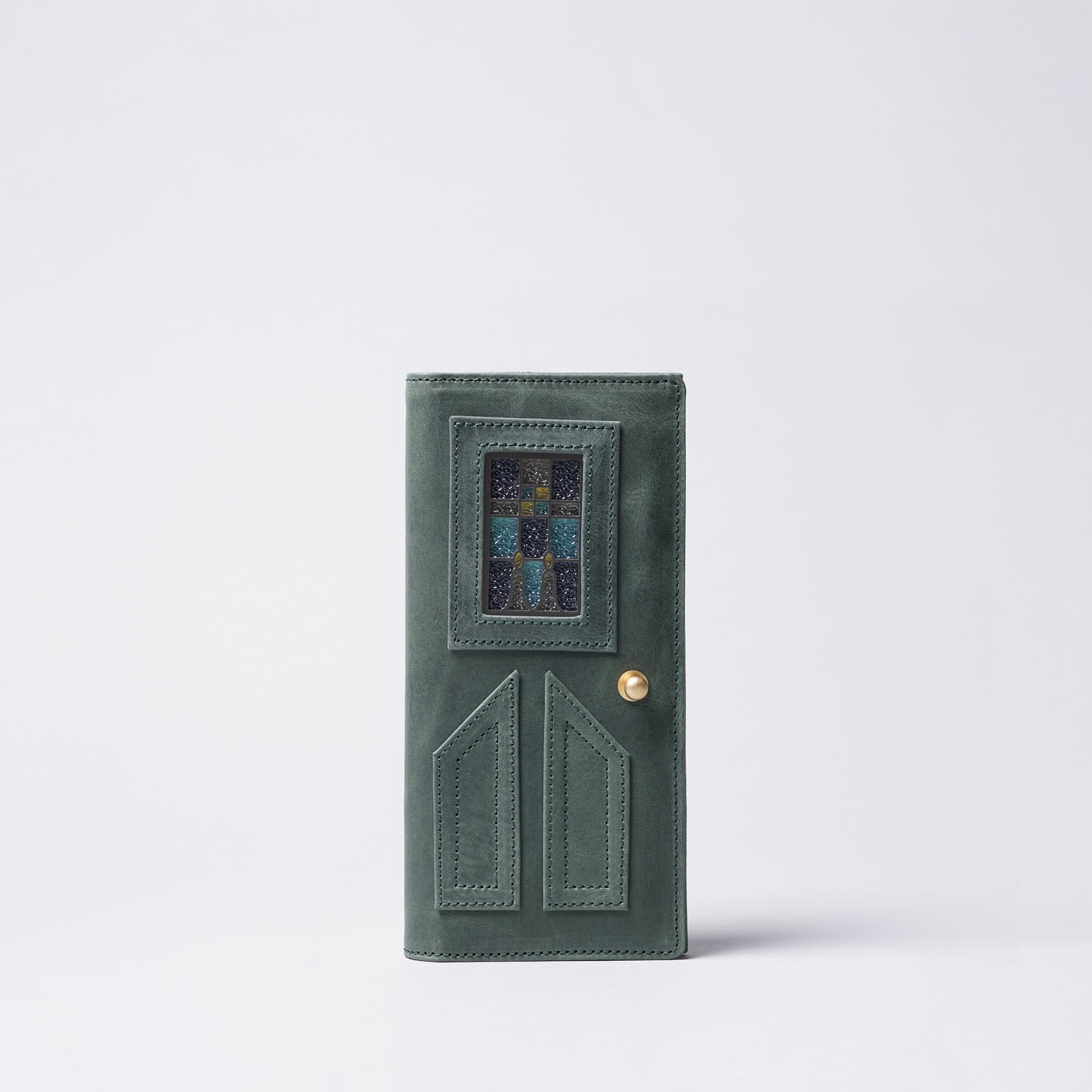 ヴィンテージのステンドグラスに近い色彩を表現したガラス部分と、マットな質感のモストロレザーとの絶妙なバランス。