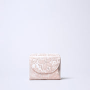 Made with delicate Italian embossed leather featuring a pearl finish. A feminine, elegant material. Crafted with care by Japanese artisans. Compact bifold wallet. The exterior coin pocket is box-style for easy visibility and access.