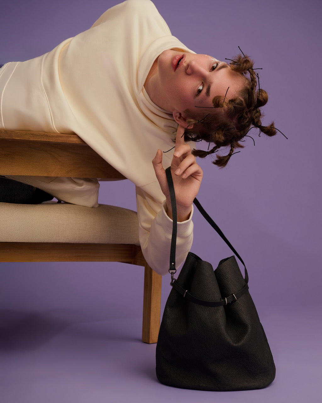 抽繩束口包/黑色
