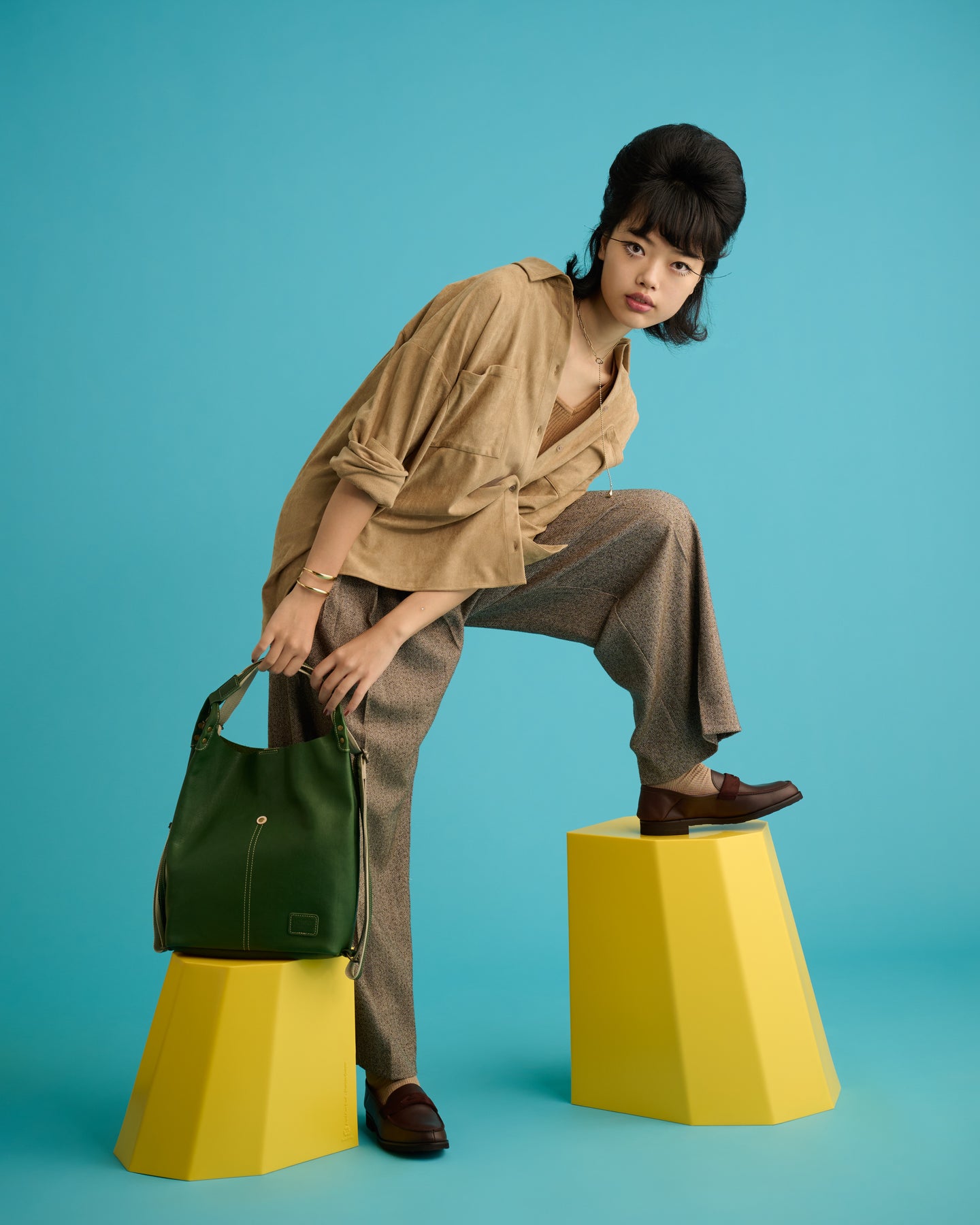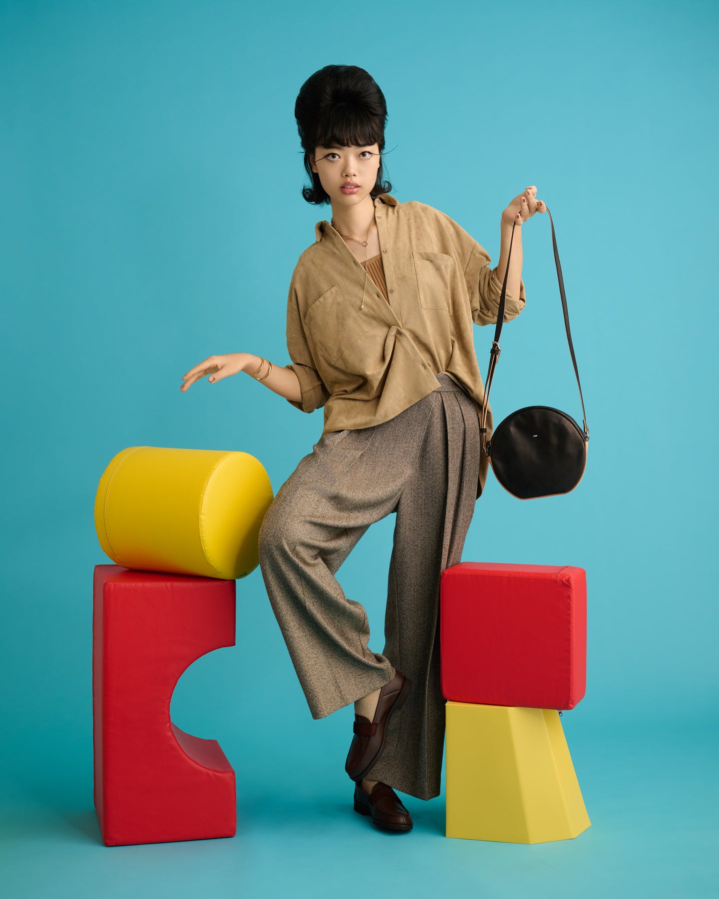 秋色で差をつけるお仕事女子コーデ こっくりした秋色を取り入れるだけで、お仕事コーデがぐっとおしゃれに。レザーの小物で季節感をプラスすれば、頑張りすぎない大人のコーデに。通勤も打ち合わせも、ちょっと気分が上がるスタイルに。 使用アイテム ESTINE<ESTINE>Logical系列 皮革斜肩包/黑色 $380.00 SENTI FLATTER THE SENSES圓形皮革編織鑰匙掛繩/藍色 $127.00 ESTINE<ESTINE>Alonge SG系列 L型方形錢包/淺藍色 $268.00 Laisser Faire<Laisser Faire>Pieza 兩用後背包/綠色 $251.00 使用ブランド モードでモダンなどこか目を惹くデザイン ESTINE アップサイクルした畳と柔らかな姫路レザーのシューズブランド Liberato 感性に刺激を与えられるモノづくりを目指す SENTI FLATTER THE SENSES フランス語で「自由気ままに」の意味を持つ Laisser Faire WORKアイテムコレクション