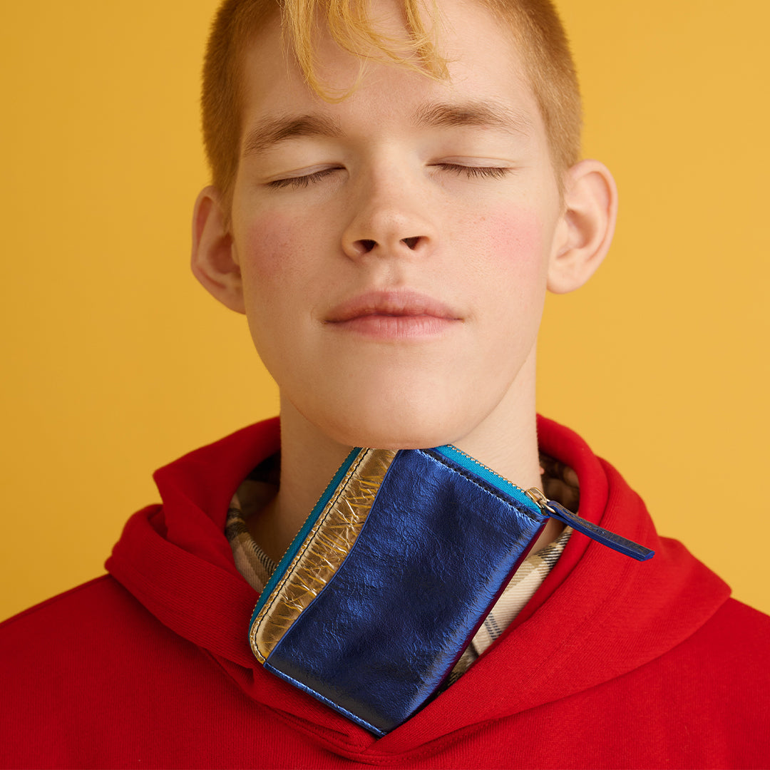 <Coquette>Round Mini Wallet(shiny)/藍色×金色