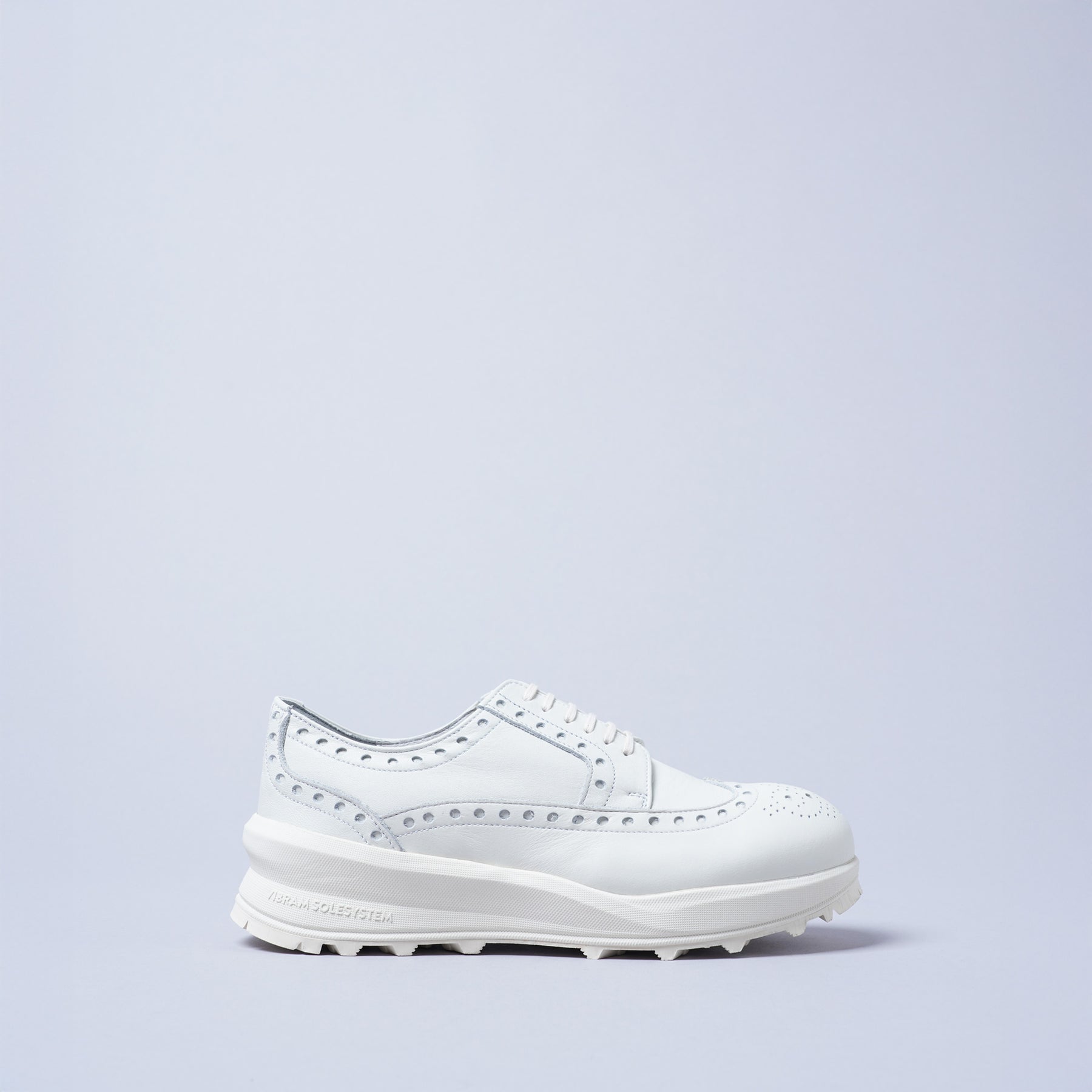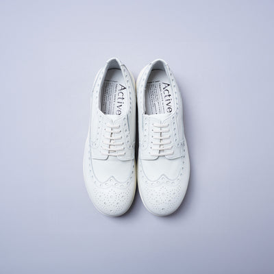 TRAVEL SHOES Active系列的這款翼紋牛津鞋,以整齊排列的圓形雕孔裝飾,展現出chausser品牌獨有的中性風格。Active系列全款式皆在鞋口加入柔軟墊,即使長時間行走也能保有舒適度。封閉式鞋襟的內側還設有鬆緊帶,不需解開鞋帶即可輕鬆穿脫。TRAVEL SHOES以「旅程」為主題展開商品系列,每雙鞋皆附有方便攜帶的旅行用鞋袋。鞋面皮革在染色階段即以氟素樹脂浸透至皮革纖維,並在表面施予防潑水處理,使之既能保有柔軟質地又可有效防水並維持透氣性。