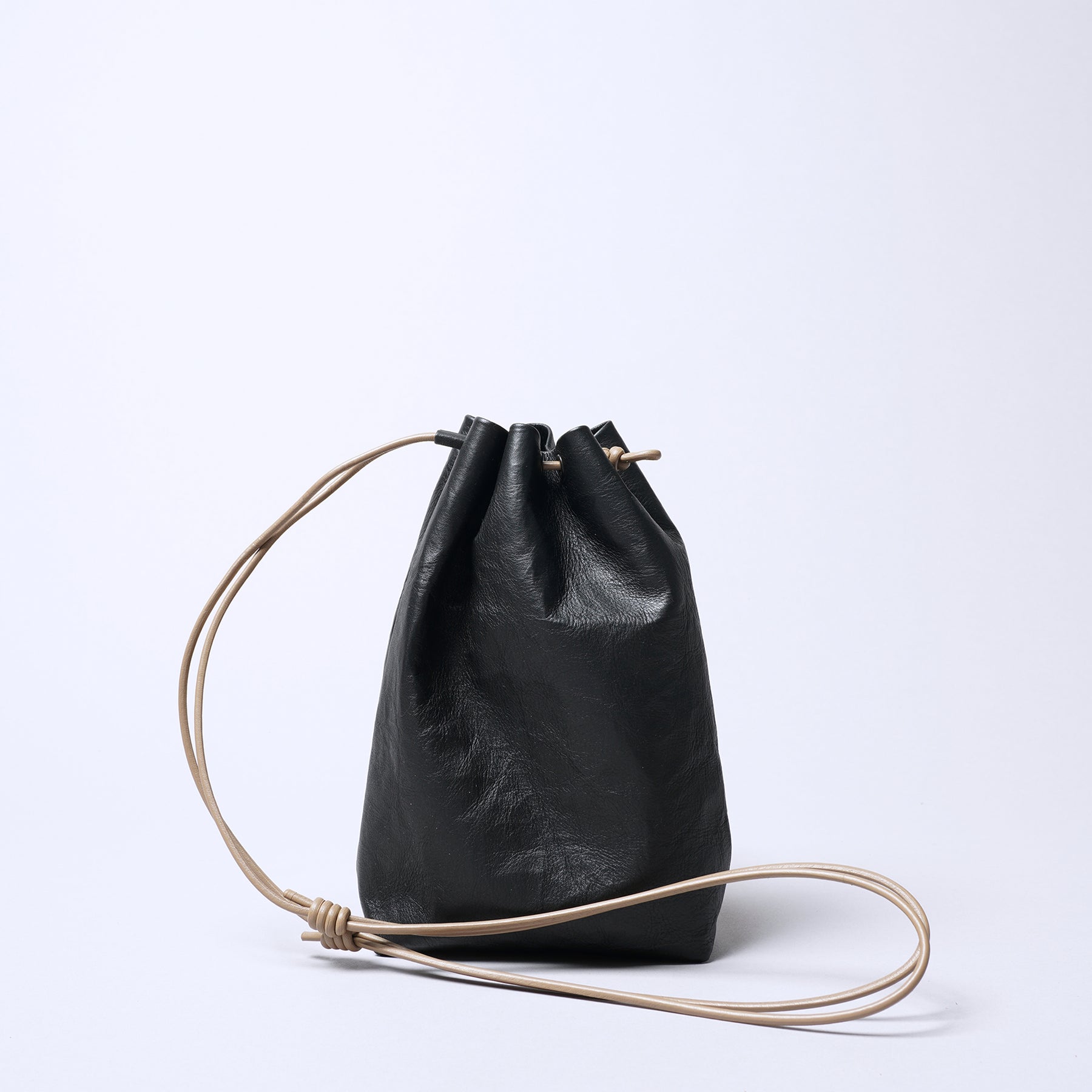 超輕量Dyneema皮革 抽繩束口包M/黑色X駱駝色