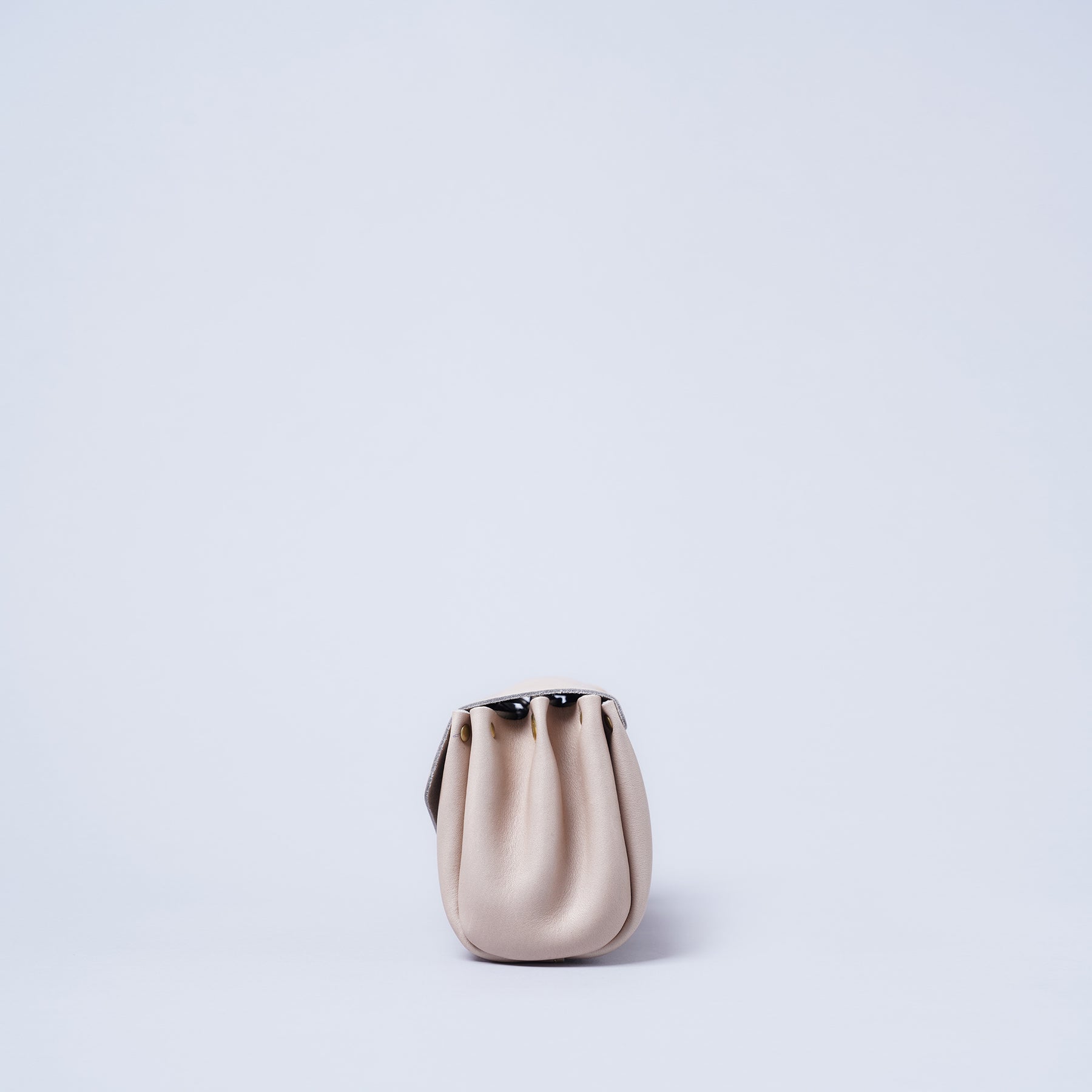 這款隨身包選用日本姫路產塗油皮革製作而成,富含油脂的皮革,擁有仿彿能貼合在手掌的絕佳觸感,隨著使用時間經過,還能享受皮革獨特的色澤舊化樂趣。包包表面呈現出的紋理特徵令人感受到皮革原始魅力,肩背帶等配件則使用厚實的NUME皮革以一枚革奢侈製成。