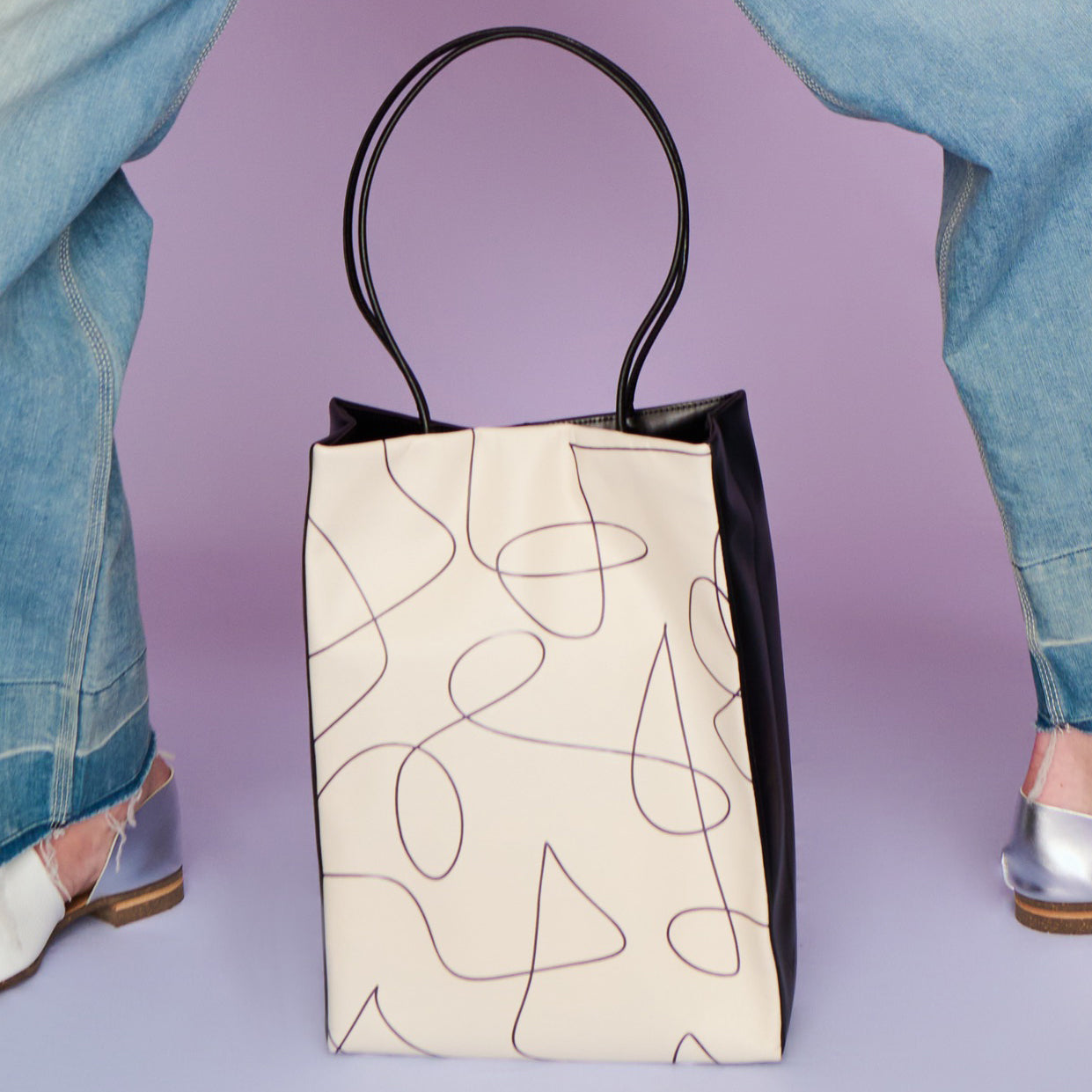 以紙袋為零感設計而成的極簡牛皮包。外觀盡可能隱藏縫線,凸顯漂亮的外形及率性感。加入有趣的繪圖將藝術、時尚結合。包款側面採用開槽工法,富含職人技藝。大小設定在A4尺寸,富有良好使用功能。考量著用感,提把設計在穿著外衣也能背在肩上的高度,適用在工作場合或收納物品多的時候。 包款開口設計一觸即可開關的磁扣,可以快速找到需要的物品。包包外側有1個拉鏈口袋、內側有2個開放式口袋、1個拉鏈口袋,使物品可整齊收納容易尋找。優雅簡約的設計,易於搭配任何服裝,給人俐落乾練的印象。estine以「時尚」、「藝術」、「當代」為關鍵字,自許超越框架,為追求自我表現的人傳達有智慧的現代都市時髦風格。