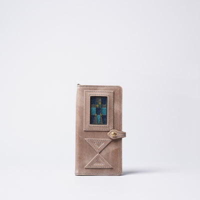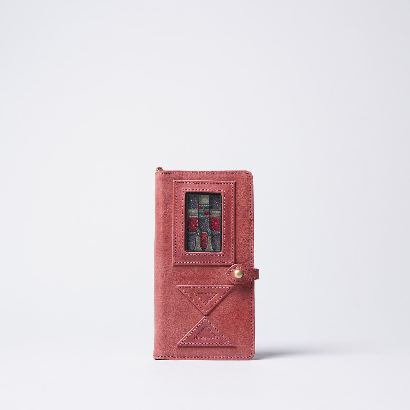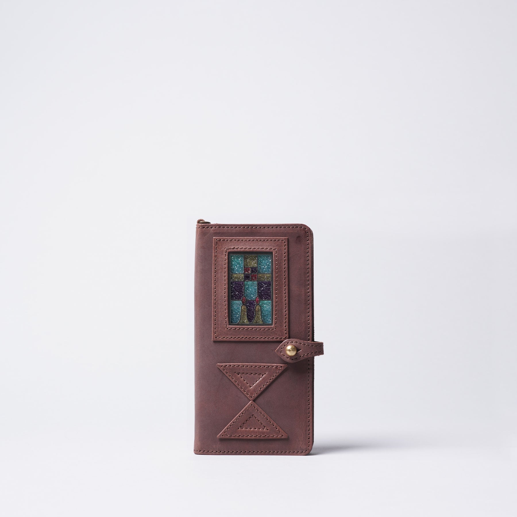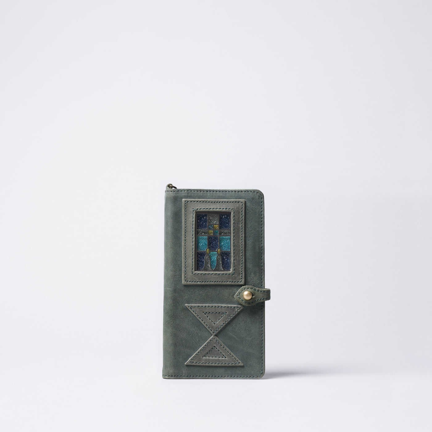 由玻璃呈現出近似於古董彩色玻璃的色彩,結合有著霧面質感的Mostro皮革,形成絕美平衡。